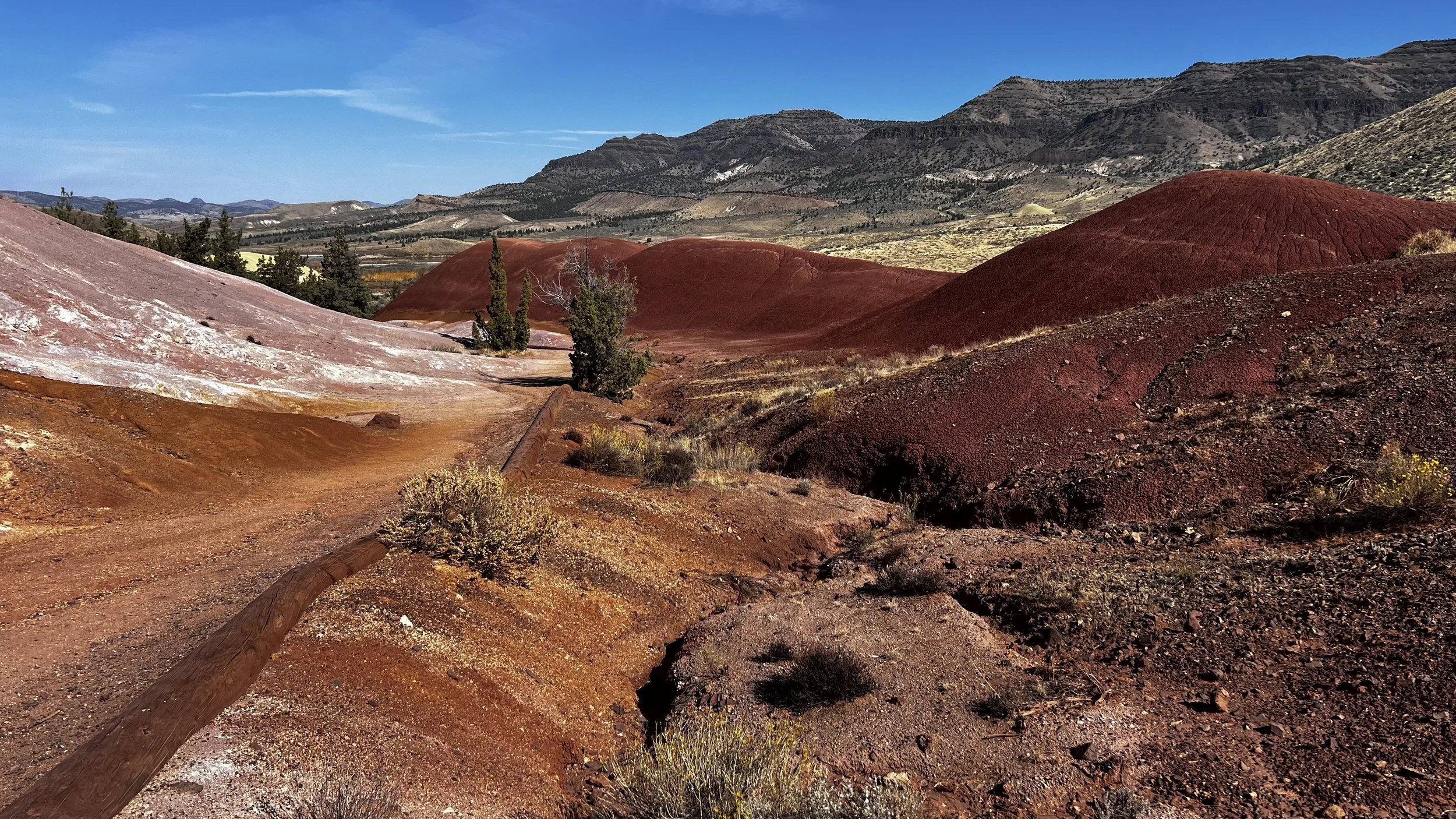 First up: The Painted Hills. This is one of three sections of the monument and consists of layers of different colored stratifications of rock and sediment deposited and eroded over millions of years. One photo won’t do it justice so here are a few more. Apparently it’s best for photography in late afternoon, but it was still pretty impressive for us in the morning.