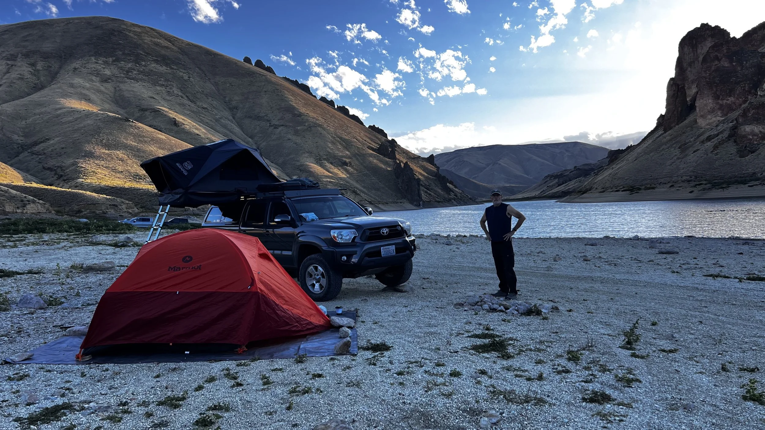 But Lady Luck was smiling upon us as we continued past and down to the boat launch to find that the lake was low, and there was beach area available for free dispersed camping. So we, along with several other adventurers, had the most beautiful lakeside sites for the night.