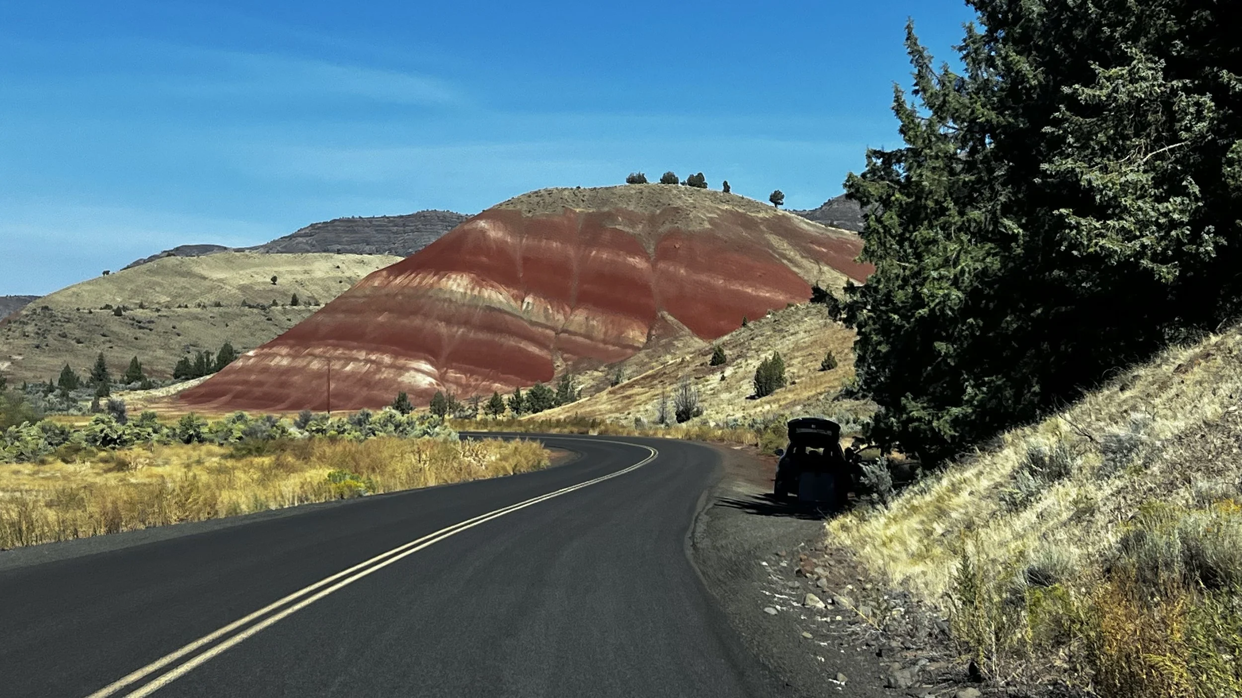We’ve been several days off-grid with no cell service so there is a lot to share here. After a great breakfast in Madras, OR at the Black Bear Diner, we headed east on US-26 and wound up in the John Day Fossil Beds National Monument to stretch our legs and see some natural wonders.