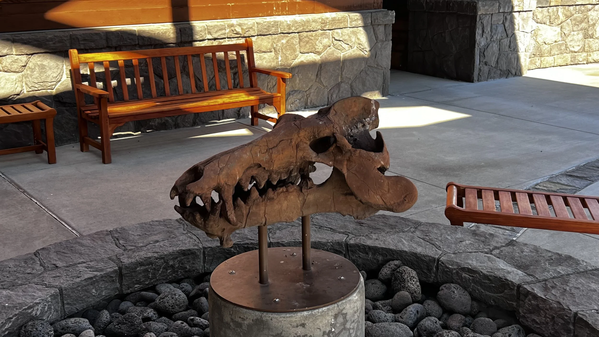 Next: we checked out the fossil visitor center but due to the government shutdown the only fossils we saw (other than each other) were a few including this one outside the visitor center entrance.