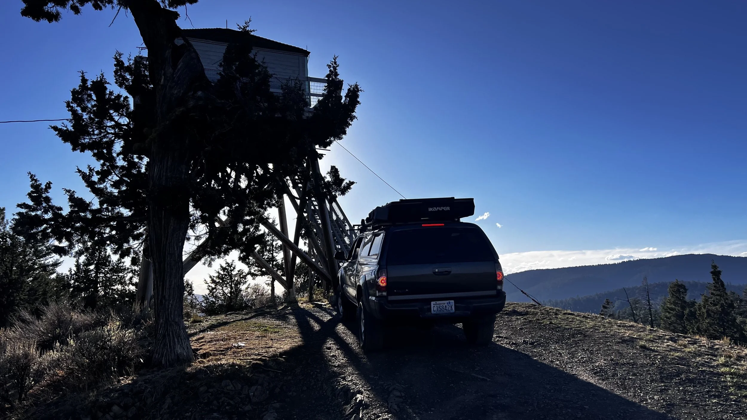 After some more driving we wound up about 30 minutes south of John Day at a campground just off US-395 for the night, but we first took a forest service road 4 miles past it to check out the Fall Mountain Lookout Tower.